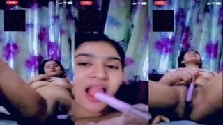 आधे घंटे तक चूत में चीजें डालकर बीएफ को दिखाती गर्लफ्रेंड