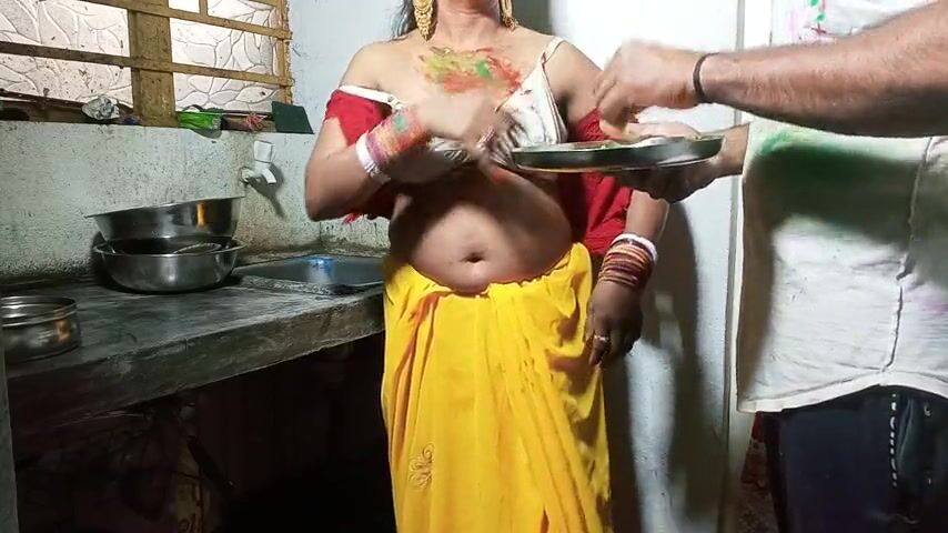 भाभी के ऊपर रंग लगा के देवर ने किचन में चुदाई की होली खेली
