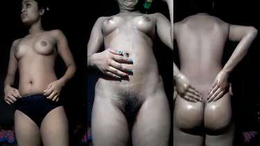 इस देसी न्यूड शो पोर्न वीडियो में देखें एक एक कर सारे कपड़े उतारकर अपना नंगा बदन तेल से चमकाती लड़की को. अंधेरे कमरे में फ्लैश लाइट ऑन कर वो अपना न्यूड शो दिखा रही हैं. रेड टॉप उतारते ही उसकी सफेद ब्रा सामने आ जाती हैं. फिर वो स्कर्ट उतारती हैं तो सेक्सी डार्क नेवी ब्लू कलर की पैंटी पहनी नजर आती हैं. उसमें वो कमाल की हॉट लग रही हैं. अब वो ब्रा खोल देती हैं तो उसके दो कबूतर आज़ाद हो जाते हैं. उन्हें देखकर ही दबाने का मन करता हैं. उसके बाद वो पैंटी नीचे सरकाती हैं तो उसकी नन्ही चिड़िया का घोंसला दिखाई देता हैं. लड़की तेल लेकर अपने बूब्स और झांटो वाली चूत पर मलने लगती हैं. फ़्लैश लाइट में तेल से चमकता उसका नंगा जिस्म देख उसे वही चोदने का मन करेगा.