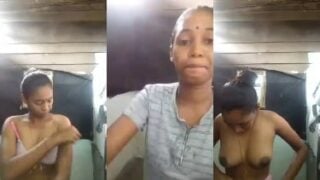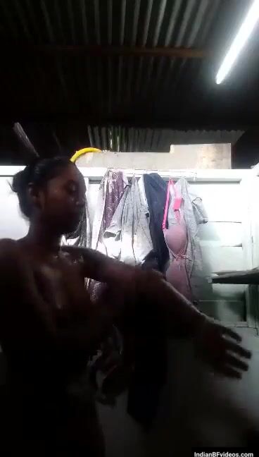 गरीब घर की यह लड़की बाथरूम में मोबाइल लगाकर नहा रही है. मोबाइल सेट करने के बाद पहले वह अपने चेहरे पर पानी उड़ेलती है. फिर वह अपना टॉप निकाल देती है. अंदर उसने गुलाबी रंग की ब्रा पहनी है जिसे वह तुरंत निकाल देती है. इसी के साथ उसके खूबसूरत बुब आजाद हो जाते हैं. गले में पहना लॉकेट भी वह निकाल देती है. अब लड़की पानी के मग अपने बदन पर उडेलने लगती है. खूंटी पर उसकी उतारी हुए ब्रा दिख रही है. बाथरूम में अंधेरा होने के कारण हमें लड़की के कमर के निचले वाले हिस्से के दर्शन होने से रह जाते हैं. आप भी देखें इस गरीब घर की लड़की को नहाते हुए.