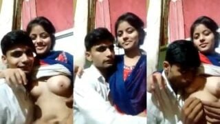 यह कजिन भाई बहन काफी दिनों के बाद आपस में मिल रहे हैं. इसलिए उनका प्यार भी उफान पर है. घर में कोई नहीं था तो भाई ने बड़े लाड प्यार से अपनी बहन को गोदी में बिठाया और फिर दोनों प्यार भरी किसिंग करने लगे. बहन भी उसमें पूरा साथ देने लगी. भाई कभी उनके गाल चूमता तो कभी गला तो कभी सीना. फिर भाई उसकी कमीज और ब्रा ऊपर उठा देता है. उसके मीडियम आकार के खूबसूरत चुचों के साथ वह खेलने लगता है. दोनों अपना यह खास सेल्फी वीडियो बना रहे हैं. भाई किसी बच्चे की तरह उसका दूध पीने लगता है तो बहन भी अपने दुपट्टे से उसका सर ढंक लेती है.