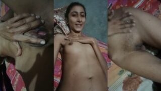 कुछ खा पी लिया भी कर लड़की दिन भर मोबाइल उठा अपनी नंगी वीडियो बनाने मे लगी रहती है ये लड़की तभी इतनी दुबली पतली है. इसको तो जीरो फिगर भी नहीं कहूंगा उससे भी कम है ये. खैर हमें तो उसके टाइट बूब्स और उसकी टाइट चुत देखने से मतलब है. क्यूट स्लिम लड़की अपने बॉयफ्रेंड के लिये अपनी न्यूड सेल्फी वीडियो बना रही है जिसमे वो अपनी टाइट चुत को सहलाते हुए अपनी टाइट चुत दिखा रही है. एक हाथ से मोबाइल पकड़ अपने नग्न शरीर को दिखाते हुए अपने छोटे टाइट बूब्स को दबाते हुए दिखा कैमरा को निचे ला अपनी टाइट चुत को दिखाने लगी. अपनी टाइट चुत को फैलाते हुए लड़की ने अपनी चुत को अच्छे से दिखाते हुए ये न्यूड वीडियो बनाई है. ऐसी दुबली पतली लड़की को तो गोदी मे उठा उसकी टाइट चुत मे बडा लंड घुसाने मे मजा आएगा.