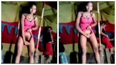 गांव वालों के सामने स्टेज पर नाचते हुए गंदी हरकतें करती तीन रंडियां