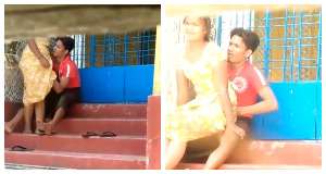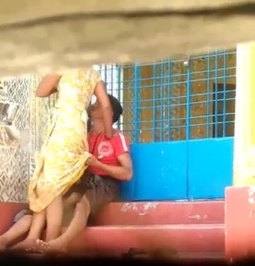 सीढ़ियों पर चुदाई करते कपल को फिल्माया