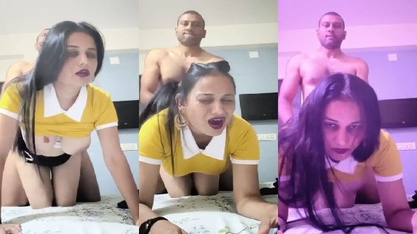 नंगा होकर आया लड़के ने लंड पे कंडोम भी चढ़ा रखा है. फिर वो पीछे से अपना बडा लंड को इस सेक्सी औरत की चुत मे डालता है ओर चोदने लगता है. जोर जोरसे लड़का सेक्सी औरत की चुत को चोद रहा है ओर सेक्सी औरत भी चुदने का मजा ले रही है लाउड मोन देते हुए. चुदाई के दौरान दोनों सेक्सी बाते भी कर रहे है. चुदाई के दौरान लड़का इस सेक्सी औरत की टीशर्ट को ऊपर कर उसके बडे बूब्स को भी बाहर निकालता है ओर बूब्स को दबाते हुए चोदत्ता है. थोड़ी देर डॉगी पोजीशन मे चुदाई कर लड़के ने इस सेक्सी औरत को लेटाके उसके दोनों टांगो को उठाके चोदा.