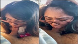 सेक्सी चश्मिश लड़की कार के अंदर अपने बॉयफ्रेंड का लंड चूस रही है