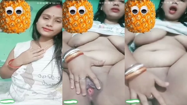 भाभी ने अपने बडे बूब्स को दबाते हुए दिखाई. बूब्स को दबाते हुए भाभी ने फैलायी अपनी टाँगे और दिखाई अपनी गोरी चिकनी सेक्सी चुत को. भाभी ने टांगो को फैलाके अपनी सेक्सी चिकनी चुत मे ऊँगली करने लगी. लाउड मोन और सेक्सी एक्सप्रेशन देते हुए चुत को दिखाते हुए तेजी के साथ चुत मे ऊँगली अंदर बाहर कर मजा करने लगी.