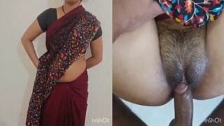 इतवार के दिन मेरी बीवी घर के कामकाज करने में व्यस्त थी. मैं उसके सामने जाकर नंगा खड़ा हुआ. बीवी हँसते हुए मेरे करीब आई और नीचे बैठकर मुझे ब्लोजोब देने लगी. फिर मैंने उसकी साड़ी उठाकर उसे लिटाया. उत्तेजना से उसकी चूत तन गई थी. कुछ दिन पहले ही उसने चूत शेव की थी. अब उसपर हलके झांटे उग गए थे. चूत भूकी लग रही थी इसलिए उसने तुरंत मेरे लंड को निगल लिया. हम दोनों को सेक्स करने में मजा आने लगा. उसकी चूचियां दबाते हुए मैं उसे चोदने लगा. उसने अपने होंठ दातों तलें दबा लिए. फिर पोज बदलकर वो मेरी तरफ पीठ कर सेक्स करने लगी.