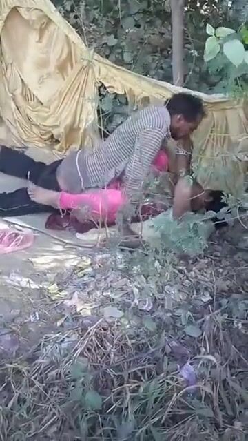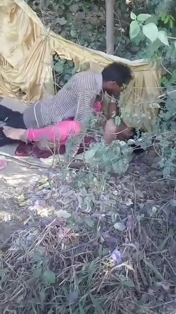 झाड़ियों में चुदाई करता देहाती जोड़ा