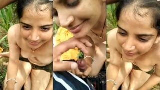 खूबसूरत गर्लफ्रेंड ने नंगे बदन खेत में चूसा बॉयफ्रेंड का लंड