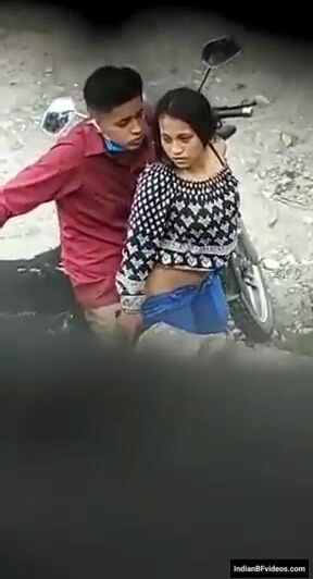 बाइक के आड़ में सीक्रेटली सेक्स करते लवर्स
