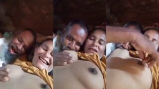 उत्तरप्रदेश के गाँव मे रहने वाले गरीब मुस्लिम मैच्योर कपल अपने बुढ़ापे मे एक दूसरे के साथ मजा कर रहे है. बुढ़ापे के उम्र मे दी दोनों अंकल ऑन्टी के बिच प्यार कम नहीं हुआ है. घर पे जब भी दोनों अकेले होते है दोनों एक दूसरे के साथ रोमांस करने लग जाते है. वैसे ऑन्टी तो अभी थोड़ी जवान ही दिख रही है लेकिन अंकल पुरे बूढ़े है लेकिन लगता है इस बुढ़ापे मे अंकल का लंड अभी भी खड़ा होता है. अंकल के दारी के साथ झांटे भी सफेद हो चुके है लेकिन लंड अभी भी किसी 30 साल के मर्द की तरह खड़ा होता है और वो ऑन्टी की जमके चुदाई करते है. आज भी अंकल अपनी बीवी के साथ मजे करने लग पड़े है. ऑन्टी को अपने बाहों मे लेकर अंकल ऑन्टी के साथ रोमन्स करने लगे. ऑन्टी के साथ रोमन्स करते हुए अंकल ने ऑन्टी की ब्लाउज को उतार दिए और ऑन्टी के बडे बूब्स को दबाने लगे. ऑन्टी के बडे लटक चुके ढीले पड़ चूसके बूब्स को अंकल बडे ही मजे से चूस रहे है. बारी बारी दोनों बडे बूब्स को दबाते हुए चूस रहे है अंकल. दोनों बूब्स के खड़े निप्पल को अपनी उँगलियों से दबाते हुए मजे से चूस रहे है अंकल. ऑन्टी भी अंकल से अपने खड़े निप्पल वाले बडे बूब्स को मजे से चूसा रही है.