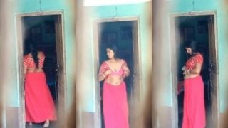 मेरे घर के खिड़की से ही बाजू वाले घर का दरवाजा साफ-साफ दिखता था. मैं खिड़की के कोने में ताक लगाकर बैठे रहता था ताकि मैं उस घर में रहने वाली भाभी जी को ताड़ सकूं. वैसे मैंने कई बार खुले दरवाजे से उन्हें कपड़े बदलते देखा है. कई बार उसका नंगा बदन मेरे सामने आया. इस वीडियो में देखो कैसे वह पूरा दरवाजा खोलकर बरामदे में आई है और अपने ब्लाउज के बटन लगा रही है. उसने गुलाबी ब्रा और पेटीकोट पहनी है. सेक्सी नाभी सामने है. फिर वह अपना ब्लाउज सेट कर लगाती है और अंदर जाकर साड़ी पहनने लगती है. कभी कभार तो वह बरामद में आकर चड्डी भी पहन लेती है. आप भी देखिए इस भाभी को साड़ी ब्लाउज पहनते हुए.