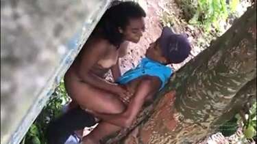 अफ्रीकन लौंडी को पेड़ की आड़ में चुदाई करते हुए स्पाई कैमरे से रिकॉर्ड किया