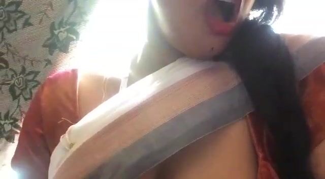 साड़ी पहनी बंगाली औरत ने दबाएं अपने रसगुल्ले