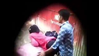 काला हिजाब, गुलाबी लिबास पहनी लड़की अपने बॉयफ्रेंड के साथ किसी पार्क के पिछवाड़े में आई हुई है. वहां दोनों सेक्रेटली सेक्स कर रहे हैं. लड़का गर्लफ्रेंड की लेगिंग में चूत के जगह पर छेद बनाता है और फिर वह उसे आगे झुकाकर पीछे से कुत्ते की तरह उसकी चुदाई करता है. लड़की पैंटी घर पर ही छोड़कर आई थी. इसलिए सीधी उसकी चूत चोदी जा रही है. इधर दीवार के छेद से कोई शख्स कैसे उन्हें फिल्मा रहा है. लड़की बड़े आराम से उसे चोदने दे रही है.