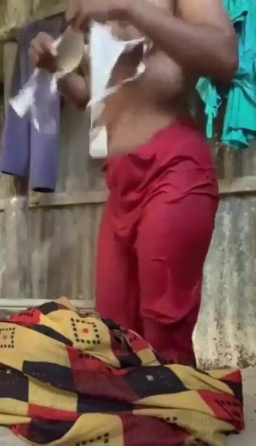 शादीशुदा औरत कच्चे बाथरूम में अपने बदन से गीले कपड़े उतार रही है. ड्रेस उतारती है तब उसकी सलवार उसकी गांड से चिपकी नजर आती है. उसके उपर से ही उसकी गोलाकार गांड का अंदाजा लग जाता है. उसकी पीठ भी मस्त कसी हुई है. फिर वो मुडकर अपना बदन तौलिये से पोंछने लगती है. इस वक़्त उसके कसे हुए बूब्स नजर आते है. फिर वो उन्हें ब्रा से ढंकती है और पीछे मुडकर गीली सलवार उतार देती है. उसके सांवले चुतड बड़े ही मस्त हैं. इस शादीशुदा औरत का जिस्म वाकई कॉलेज वाली लड़कियों की तरह है. फिर आगे से वो अपनी काली चिकनी चूत दिखाती है.