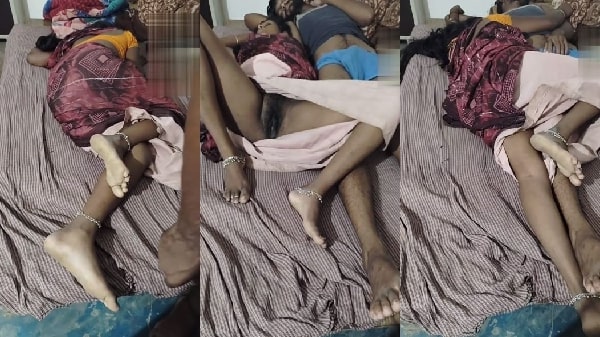 बीवी दिन मे घर का सारा काम निपटाके सो रही थी. साड़ी पहन अपने कमरे मे सो रही थी. पति जानता था उसकी बीवी ने आज साड़ी का निचे चड्डी नहीं पहनी हई है. फिर पति कमरे मे घुसा और एक जगहर छुपके से कैमरा को सेट किया और अपनी बीवी के बगल मे आके लेट गया. पति के अपने पास आके लेटते ही पत्नी भी पति के बाहों मे लिपट कर लेट जाती है. दोनों थोड़ा प्यार भी करते है लेकिन पत्नी थकी हुई थी तो वो अभी चुदने के मूड मे नहीं थी. फिर पति अपनी बीवी के टाँगे फैलाके लेटने को कहाँ पत्नी भी मान जाती है लेकिन उसको अपने ठरकी पति के असली मक़सद के बारे मे नहीं पता जैसे हो वो अपनी टाँगे खोलके लेटी उसकी घणी काली झाँटो वाली चुत साफ दिखाई दिया. जो भी कहो झाँटो वाली बुर देखें मे मजा तो आया भले ही थोड़ी देर के लिये ही क्यूँ ना हो.