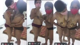 मास्क, ब्रा और चड्डी पहनी दो गजरे वाली मल्लू औरतों का लेस्बियन रोमांस