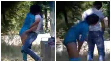 पार्क में खड़े खड़े फटाफट चुदाई करता कपल पकड़ा गया